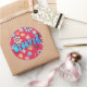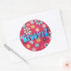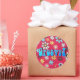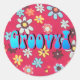 Round sticker with the 60s catchword “Groovy!” on a vintage 1960s image of whimsical yellow, blue, orange and purple flowers on red. See matching favour bag, favour box, favour tag and label. See the entire Psychedelic 60s Sticker collection in the INVITES | Stickers & Labels section.