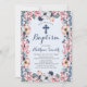 Celebrate your special day with this beautiful baptism invitation design. This design features a beautiful flower frame and cross. You can customise all the text and background colour.