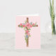 This easter card features a watercolor portrait of a cross decorated with pink spring flowers.