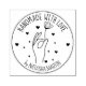 This "Handmade with love" rubber stamp features a hand with a flower and custom name.