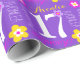 Modern text and flower design personalised age birthday girls gift wrapping paper, featuring graphic flowers and your own short name in a purple, pink, white, and yellow. Personalise with your own choice of name (please note not all names will fit due to the nature of the font) and age, currently reads Avonlea 17, other name lengths are available if you need assistance contact me, happy to post one for your name. A great way to give a personalised touch to birthday gifts. Uniquely designed by Sarah Trett for www.mylittleeden.com