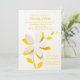This crisp, white invitation with an underlying sunny yellow layer has cutout flower petals that appear to stand on edge. Perfect for a shower or any happy celebration.