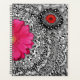A beautiful planner featuring hand drawn doodle art patterns and bright pink and red flowers.