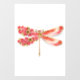 Artistically drawn, gold, jewelled dragonfly with red and wings decorated with red, blooming, jewelled Japanese cherry on white background. Gold Dragonfly.