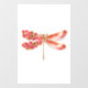 Artistically drawn, gold, jewelled dragonfly with red and wings decorated with red, blooming, jewelled Japanese cherry on white background. Gold Dragonfly.