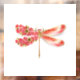 Artistically drawn, gold, jewelled dragonfly with red and wings decorated with red, blooming, jewelled Japanese cherry on white background. Gold Dragonfly.