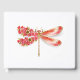 Artistically drawn, gold, jewelled dragonfly with red and wings decorated with red, blooming, jewelled Japanese cherry on white background. Gold Dragonfly.