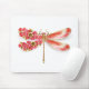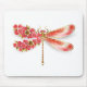 Artistically drawn, gold, jewelled dragonfly with red and wings decorated with red, blooming, jewelled Japanese cherry on white background. Gold Dragonfly.