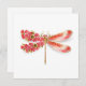 Artistically drawn, gold, jewelled dragonfly with red and wings decorated with red, blooming, jewelled Japanese cherry on white background. Gold Dragonfly.