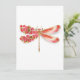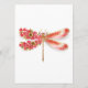 Artistically drawn, gold, jewelled dragonfly with red and wings decorated with red, blooming, jewelled Japanese cherry on white background. Gold Dragonfly.