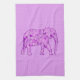 Mixed pattern digital graphic of a richly embellished elephant against an arabesque tiled background - shades of lavender, orchid and amethyst purple