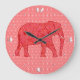 Flower elephant - deep red and coral large clock