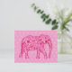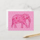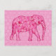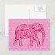 Mixed pattern digital graphic of a richly embellished elephant against an arabesque tiled background - shades of pink from pale pink to deep fuchsia