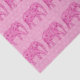 Mixed pattern digital graphic of a richly embellished elephant against an arabesque tiled background - shades of pink from pale pink to deep fuchsia
