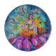 Colourful and whimsical faery sitting on a pink fuchsia flower in gold sparkles .Acrylic painting in white,pink blue green yellow colours ,golden and silver foil with iridescent colours . (c) by Bulgan Lumini Vibrant ,whimsical, colourful flower faery, acrylic painting .It is also a beautiful design for Christmas,Holidays, special occasions ,birthdays, wedding and Valentine's Day