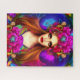 This is a beautiful puzzle featuring a flower fairy queen in vibrant colour of pinks, purples and blues.