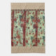vintage fabric with various flowers and plants in reddish browns and greens.