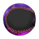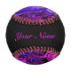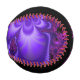 A baseball with a hot pink and purple flower fractal design. One half is the fractal pattern. The other is plain black with the name in a matching pink.