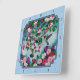 Flower Garden and Hummingbirds Blue Square Wall Clock
