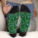 Sock dotted with flowers and a gardener planting seedlings in each calf