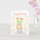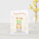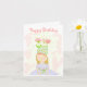 Little girl in flower party hat birthday card.
