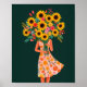 This art print features a painting of a woman carrying a large bouquet covering her head.