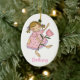 Adorable way to say thank you, to your flower girl, with this oval ceramic shaped ornament. Country primitive artwork of a little girl holding a big pink tulip. Personalise by adding your flower girl's name at the bottom, and a thank you message on the backside. A gift she will cherish for years to come.
