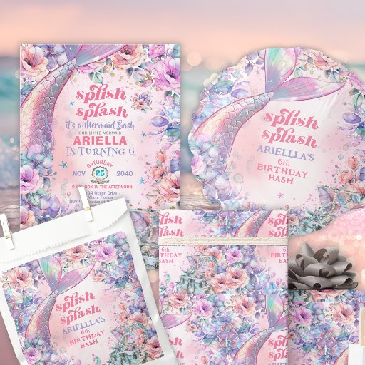 Flower Glitter Mermaid Tail Splish Splash Pink and Purple