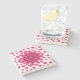 The coasters are gorgeous, a quality feel and heavy weight. They look like a precious archeological find. A rustic stone juxtaposed with a modern floral black and white print. I like the way the print goes slightly imperfect on the cut stone edges giving them a kind-of natural beauty.