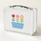 This is a standard metal lunchbox that appears to work just fine. We designed this box ourselves with an uploaded photo and custom text on the front and back. It looks absolutely beautiful except the front of the lunchbox is not centered like it shows in the photo. The print borders don't align with the inset flat part of the box where the preview photo online showed it perfectly centered in there. The back looks nice and centered though.