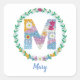 Flower Letters Initial "M" with Personalised name Square Sticker