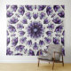 Flower mandala tapestry with a kaleidoscopic pattern created from a watercolor and ink drawing of an abstract lotus flower in blue, violet and black.