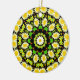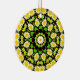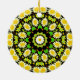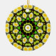 A round ornament with a kaleidoscopic mandala pattern based on a drawing of flowers.