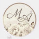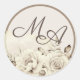 Flowers, Rustic dusty white roses wedding Round Stickers with an old beige background.