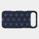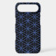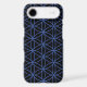 The flower of life symbol in a repeat pattern in blue detail on a black background.