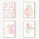 A combination of soft, quilt inspired designs, and a flower creates this cute, bedroom wall decor art print. The background is white, while the flower consists of white with light shades of green, yellow, and pink. This art print features a signature by me, the artist.
