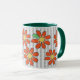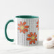 Cute graphic flowers on a neutral, grey background based on binary codes. Mug details are set to green - can be modified. Is this your favourite mug?