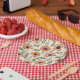 Create a bright dining table with a flower plate.