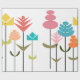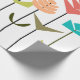 This wrapping paper has a mid-century modern design of flower made from squares, ovals, and diamonds that have been manipulated to form flowers.