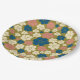 Flower Pattern - Blue, Olive Green, Pink and Cream Paper Plate