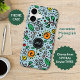 Fresh Summer Breeze Floral Phone Case - Flower Pattern orange Swirl Berry Design is hand drawn and shows a seamless repeating floral pattern with green leaves and round orange berries. The main colors in this Pattern are, green, orange, yellow, blue, on a teal blue Background.