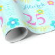 Modern text and flower design personalised age birthday girls gift wrapping paper, featuring graphic flowers and your own eight letter name in orange yellow, aqua green blue, pink and white. Personalise with your own name (please note not all names will fit due to the nature of the font) and age, currently reads Aleirah 25, other name lengths are available, if you need assistance please contact me, happy to post one for your name. A great way to give a personalised touch to birthday gifts. Uniquely designed by Sarah Trett.