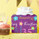 Modern text and flower design personalised age birthday girls gift wrapping paper, featuring graphic flowers and your own eight letter name in dark purple, yellow, aqua green blue, pink and white. Personalise with your own name (please note not all names will fit due to the nature of the font) and age, currently reads Kourtney 35, other name lengths are available, if you need assistance please contact me, happy to post one for your name. A great way to give a personalised touch to birthday gifts. Uniquely designed by Sarah Trett.