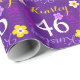 Modern text and flower design personalised age birthday girls gift wrapping paper, featuring graphic flowers and your own six-letter name in purple, pink, white, and yellow. Personalise with your own short name (please note not all names will fit due to the nature of the font) and age, currently reads Kinsley 46, other name lengths are available if you need assistance contact me, happy to post one for your name. A great way to give a personalised touch to birthday gifts. Uniquely designed by Sarah Trett for www.mylittleeden.com