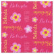 Modern text and flower design personalised girls text typographical name fabric. Colourful pink and yellow graphic flowers and your own seven letter or shorter name in purple, pink, white and yellow. Personalise with your own name (please note not all names will fit due to the nature of the font) currently reads Belinda, other name lengths are available, if you need assistance contact me, happy to post one for your name. A great way to personalise your sewing and quilting projects. Art and design by Sarah Trett.