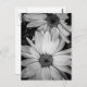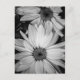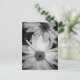 A postcard with a black and white photograph of a couple of white flowers.