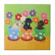 Flower Pot Labrador Puppies Ceramic Tile. Colourful and cute Labrador Retriever Puppy Painting design with pretty daisies. Black Labrador, Yellow Labrador, Chocolate Labrador Puppies are all painted in the picture. The puppies are sitting in the colourful flower pots with orange and pink and red flowers. Cute heart patterns on the flower pots. Whimsical Labrador Painting painted by Naomi Ochiai from Japan. Great fun gifts for dog lovers who love Labradors!