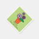Cheery purple abstract daisies with a single green leaf in a bright orange flower pot make up the simple design on this napkin that is perfect for a summer birthday party.