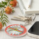 Round single-sided acrylic keychain with an image of that 60s and 70s catchphrase “Flower Power" in rainbow 60s-style lettering across a white daisy in full bloom on orange. See the entire Disco 70s Keychain collection in the PARTY FAVORS section.