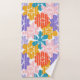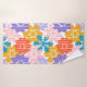 This towel set has a turquoise washcloth, a purple hand towel, and a bath towel with a mid-century modern design of mixed flowers in flower power colours. Want different colours? Message me.
